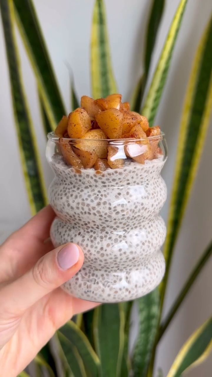 6. Top it off: Pull your chia pudding out of the fridge, give it a final stir, and pile those warm caramelized apple slices right on top. Dig in and enjoy the cozy, dessert-for-breakfast vibes!