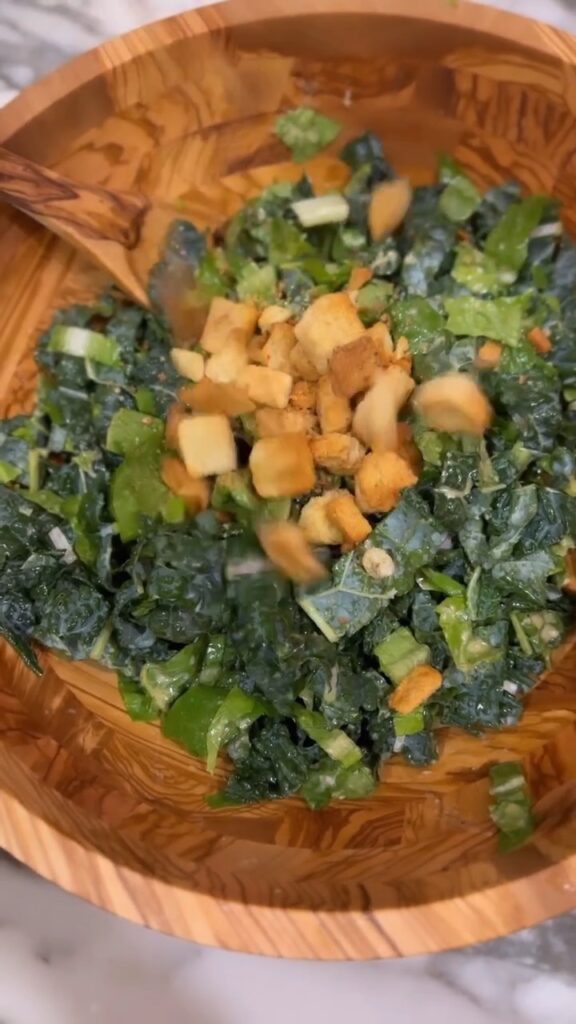 If you haven’t tried Tuscan kale in a Caesar salad yet, this is your sign. FYI, massage the kale briefly with a tiny bit of olive oil and salt before adding the dressing — it softens the leaves and removes any bitterness.