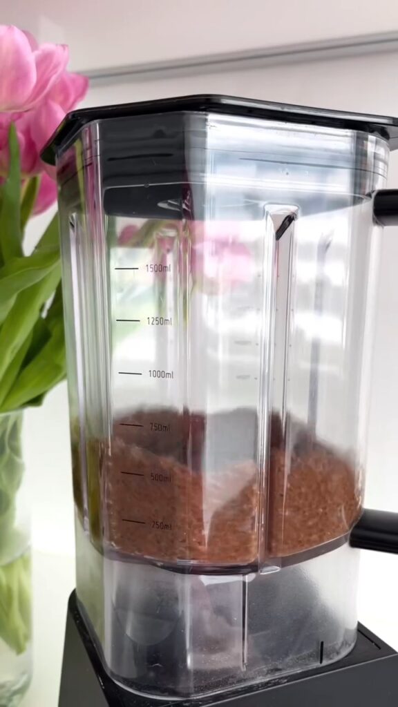Pour the soaked mixture into a blender and blend on high until completely smooth. Aim for 60 to 90 seconds of blending to ensure every seed gets fully broken down. The mixture should look like a thick, uniform chocolate shake when it’s ready. Taste it at this point — if you want more sweetness or more chocolate intensity, add it now before chilling.