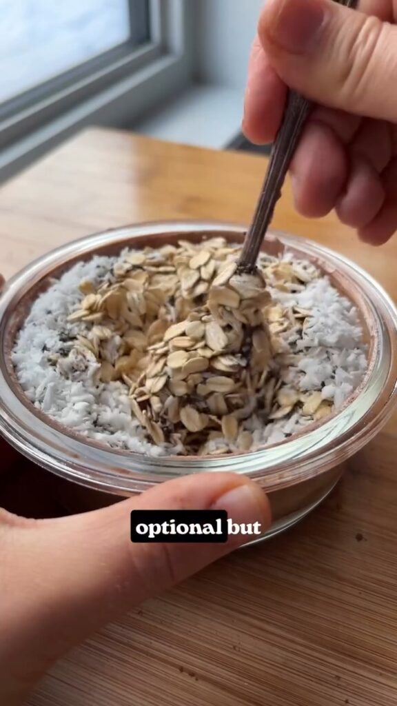 This isn’t just overnight oats — it’s a genuinely craveable breakfast that also happens to be high in protein, packed with fiber, and meal-prep friendly. The chocolate shell takes it from “healthy breakfast” to “thing I actually look forward to eating,” and that matters more than people give it credit for.