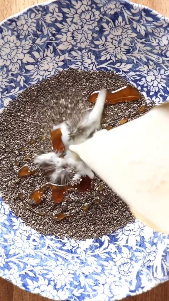 1. Mix the chia seeds, milk, and sweetener in a jar or bowl.