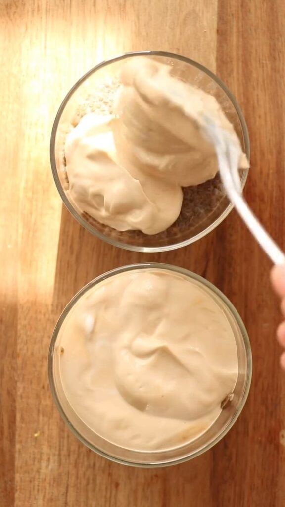 5. Pour the creamy coffee mixture on top of the set chia pudding.