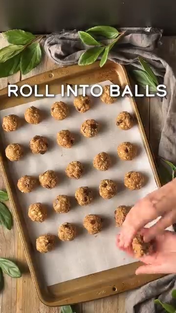 Scoop out small portions of the mixture and roll them into bite-sized balls. Pro tip: wet your hands slightly to prevent sticking.